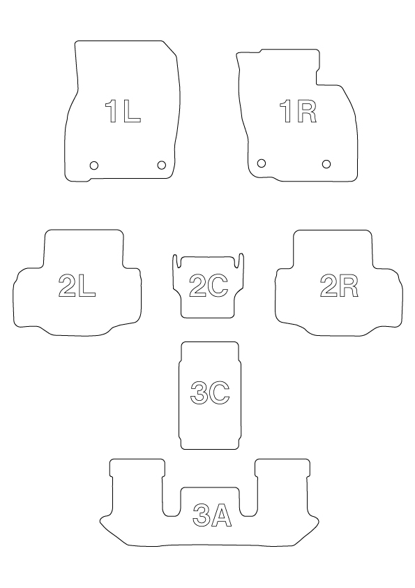 | 備 考 | E-Four可 ※2列目シートを折りたたんだ際、また3列目シートを格納した際にシートと立体マット(2A、3R、3L、3C)が干渉します。 長時間、シートを折りたたんだり格納した状態にすると、立体マットの変形やシート表皮に跡が残る可能性があります。 ET-1683 2列目 干渉箇所 ET-1683 3列目 干渉箇所 |