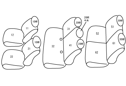 | 形 状 | 1列目ハイバックシート(背もたれ・ヘッドレスト一体式) 助手席シートバックテーブル無し 2列目折りたたみシート(一体型シート・ヘッドレスト無し) に適合 |